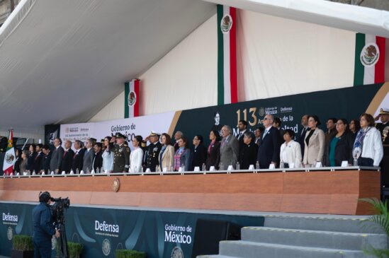 Ciudad de México, 9 de febrero de 2026.- La Presidenta y Comandanta Suprema de las Fuerzas Armadas, Claudia Sheinbaum Pardo, encabezó la ceremonia por el 113 Aniversario de la Marcha de la Lealtad, en el Zócalo de la Ciudad de México.