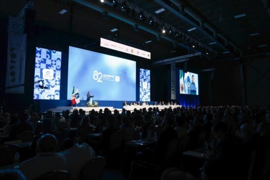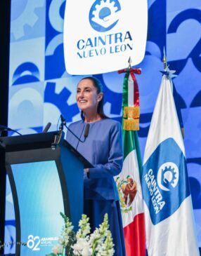 Monterrey, Nuevo León, a 25 de marzo de 2026.- En la 82 Asamblea Anual de la Cámara de la Industria de la Transformación de Nuevo León (CAINTRA), ante más de 4 mil empresarios, la Presidenta Claudia Sheinbaum Pardo resaltó que avanza muy bien la revisión del Tratado entre México, Estados Unidos y Canadá (T-MEC), ya que se instaló una mesa de trabajo formal, lo que da certidumbre al país y permite ser positivos para este año.