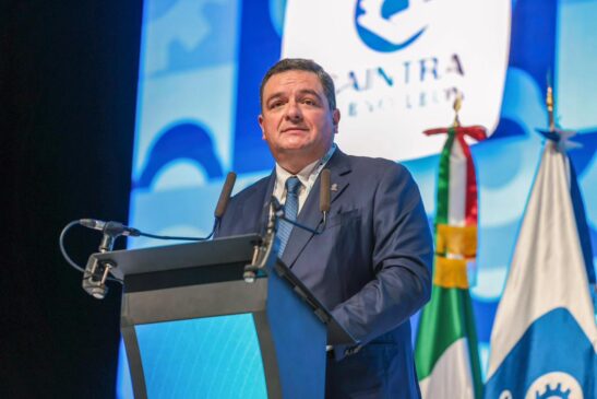 El presidente del Consejo Directivo de Caintra Nuevo León, Jorge Santo Reyna, agradeció la presencia de la mandataria y reconoció su apertura para la construcción de un diálogo que genera círculos virtuosos, certidumbre y capacidad de gestión con el sector empresarial.